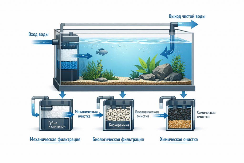 Поддержание качества воды в аквариуме требует системного подхода, включающего: